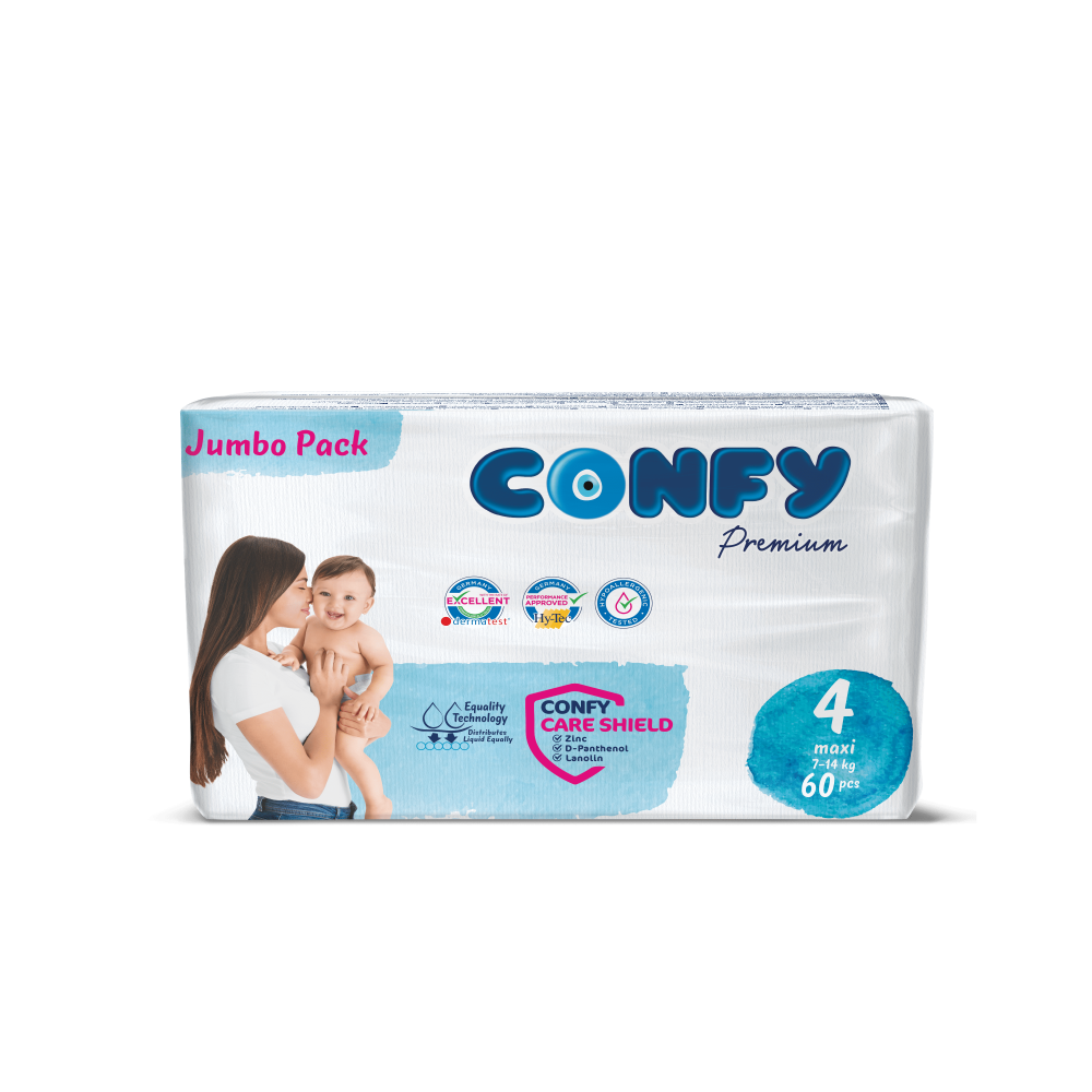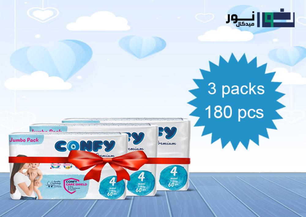 اختاري الكمية التي تناسب احتياجات طفلكِ واستمتعي براحة البال مع حفاضات كونفي بريميوم جامبو مقاس 4!