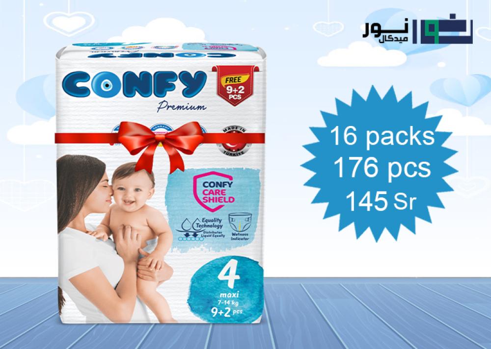 راحة استثنائية وحماية فائقة: حفاضات كونفي بريميوم للأطفال مقاس 4 مصممة لتوفير راحة مثالية لطفلك مع حماية متكاملة ضد الحساسية.