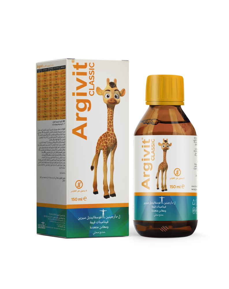 يحتوي أرجيفيت كلاسيك على تركيبة متكاملة من الفيتامينات والمعادن والأحماض الأمينية الضرورية لدعم النمو البدني والذهني للأطفال والمراهقين، وتشمل: