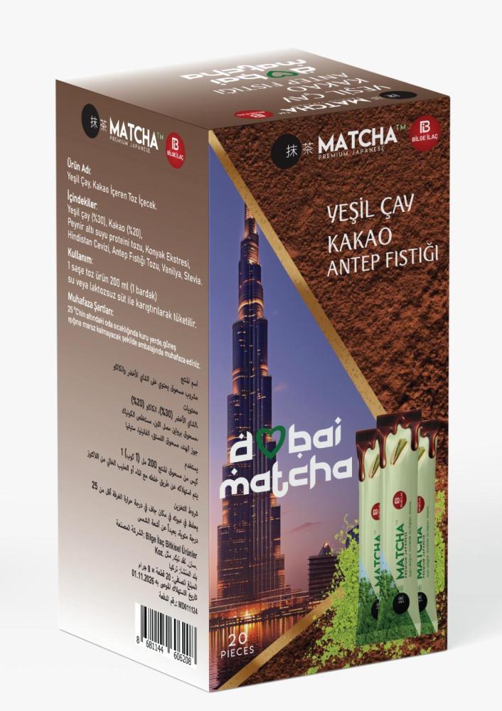 شاي ماتشا بريميوم ياباني بالكاكاو والفستق - 20 ظرف عنتاب